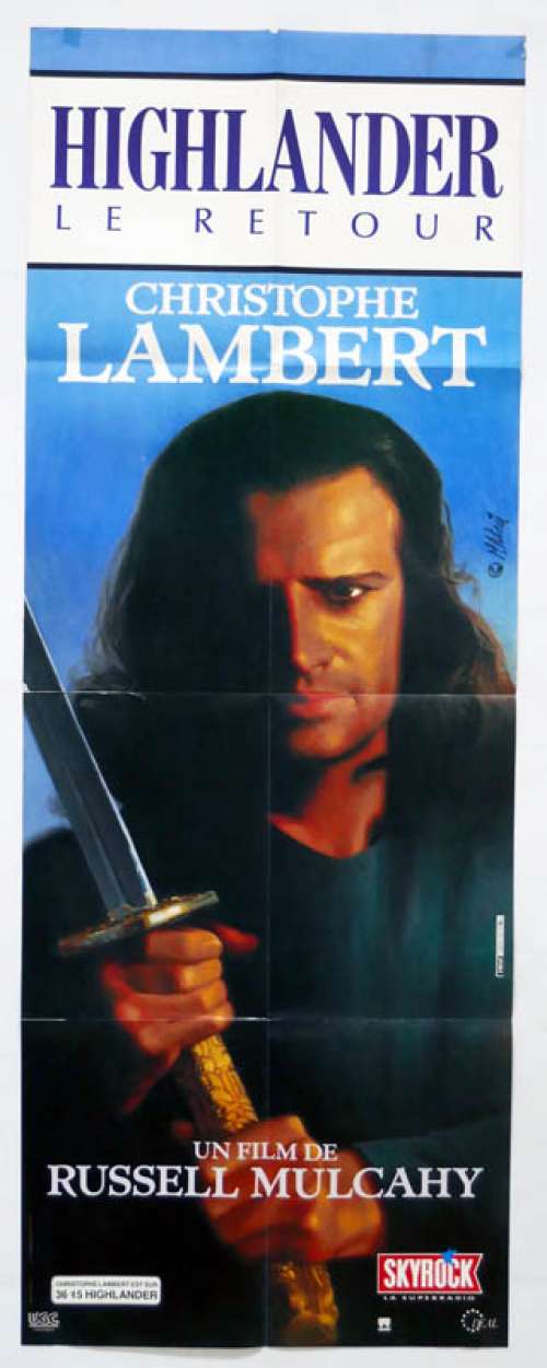 47" x 63" movie poster from HIGHLANDER II: THE QUICKENING (1991), directed by Russell Mulcahy with Christopher Lambert, Sean Connery, Virginia Madsen, Michael Ironside, Allan Rich (more on the Imdb)