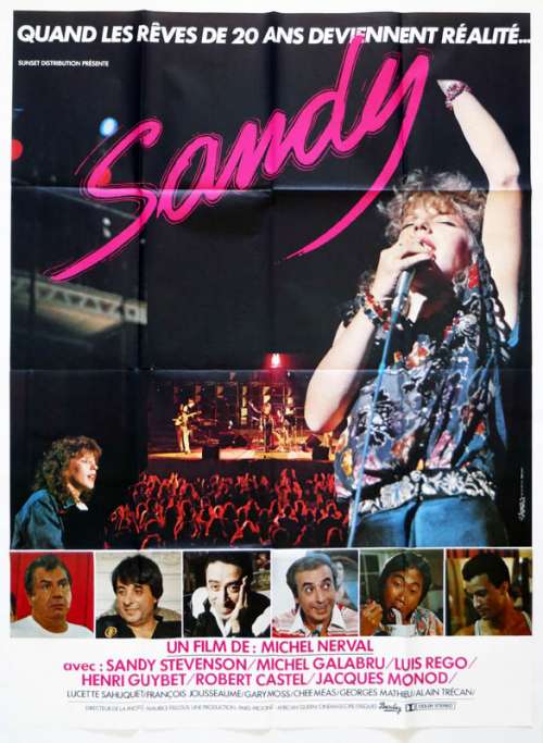 47" x 63" movie poster from SANDY (1983), directed by Michel Nerval with Sandy Stevenson, Michel Galabru, Luis Rego, Henri Guybet, Robert Castel (more on the Imdb)