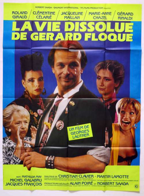 47" x 63" movie poster from LA VIE DISSOLUE DE GÉRARD FLOQUE (1986), directed by Georges Lautner with Roland Giraud, Clémentine Célarié, Jacqueline Maillan, Marie-Anne Chazel, Gérard Rinaldi (more on the Imdb)