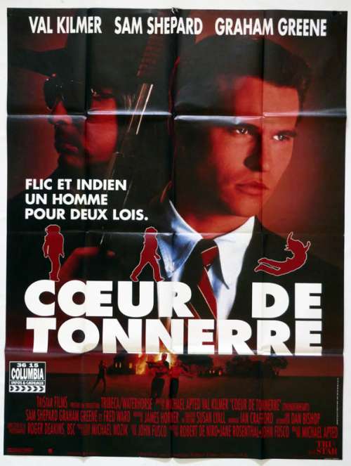 47" x 63" movie poster from THUNDERHEART (1992), directed by Michael Apted with Val Kilmer, Sam Shepard, Graham Greene, Fred Ward, Fred Thompson (more on the Imdb)
