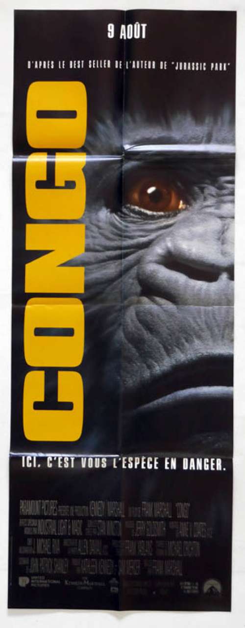 47" x 63" movie poster from CONGO (1995), directed by Frank Marshall with Laura Linney, Dylan Walsh, Ernie Hudson, Tim Curry, Grant Heslov (more on the Imdb)