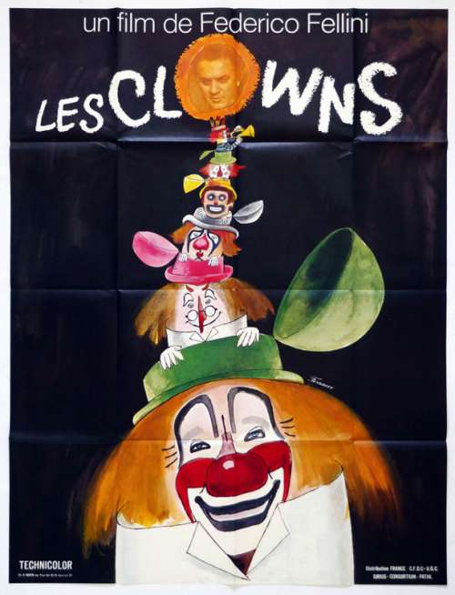 47" x 63" movie poster from THE CLOWNS (1970), directed by Federico Fellini with Riccardo Billi, Gigi Reder, Tino Scotti, Valentini, Fanfulla (more on the Imdb)