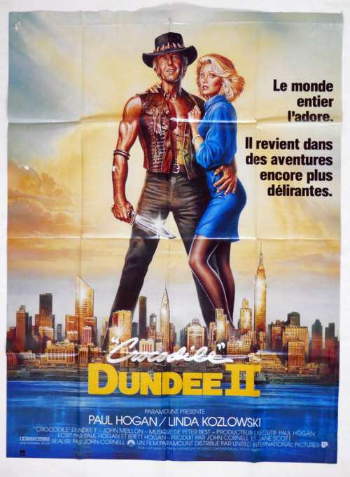 47" x 63" movie poster from CROCODILE DUNDEE II (1988), directed by John Cornell with Paul Hogan, Linda Kozlowski, John Meillon, Ernie Dingo, Steve Rackman (more on the Imdb)