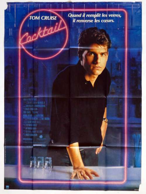 47" x 63" movie poster from COCKTAIL (1988), directed by Roger Donaldson with Tom Cruise, Bryan Brown, Elisabeth Shue, Lisa Banes, Laurence Luckinbill (more on the Imdb)