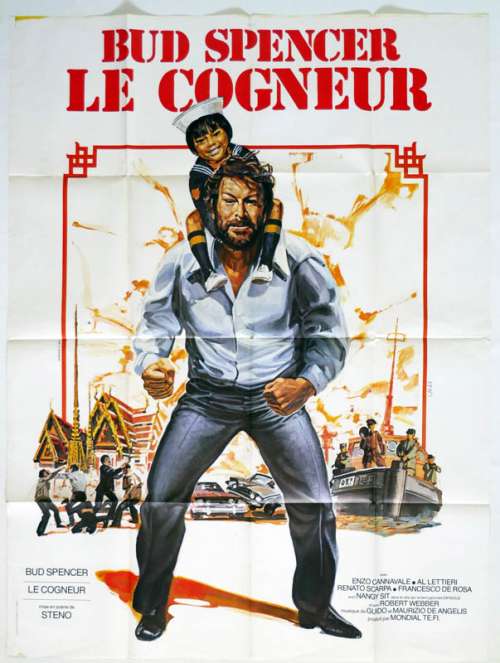 47" x 63" movie poster from FLATFOOT IN HONG KONG (1975), directed by Steno with Bud Spencer, Al Lettieri, Enzo Cannavale, Renato Scarpa, Francesco De Rosa (more on the Imdb)