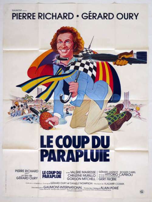 47" x 63" movie poster from THE UMBRELLA COUP (1980), directed by Gérard Oury with Pierre Richard, Valérie Mairesse, Christine Murillo, Gordon Mitchell, Gérard Jugnot (more on the Imdb)