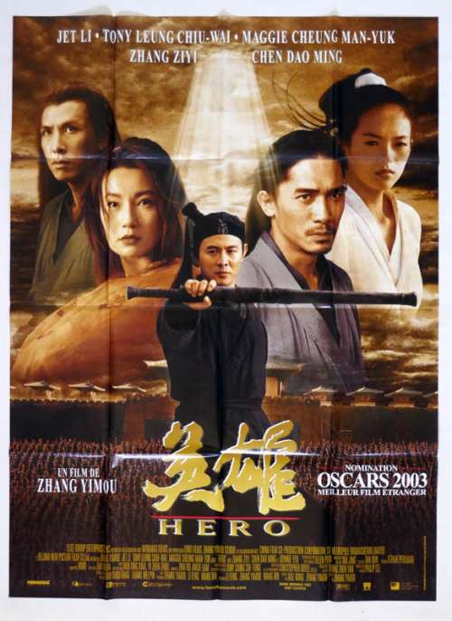 47" x 63" movie poster from HERO (2002), directed by Yimou Zhang with Jet Li, Tony Leung Chiu-wai, Maggie Cheung, Ziyi Zhang, Daoming Chen (more on the Imdb)