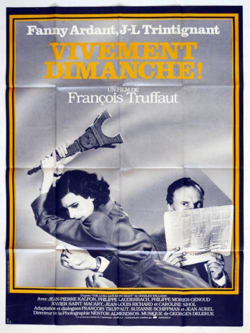 47" x 63" movie poster from CONFIDENTIALLY YOURS (1983), directed by François Truffaut with Fanny Ardant, Jean-Louis Trintignant, Jean-Pierre Kalfon, Philippe Laudenbach, Philippe Morier-Genoud (more on the Imdb)
