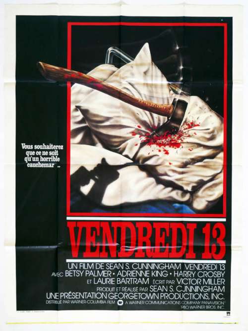 47" x 63" movie poster from FRIDAY THE 13TH (1980), directed by Sean S. Cunningham with Betsy Palmer, Adrienne King, Jeannine Taylor, Robbi Morgan, Kevin Bacon (more on the Imdb)