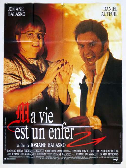 47" x 63" movie poster from MY LIFE IS HELL (1991), directed by Josiane Balasko with Daniel Auteuil, Josiane Balasko, Richard Berry, Michael Lonsdale, Catherine Samie, Jean Benguigui (more on the Imdb)