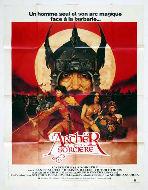 47" x 63" movie poster from THE ARCHER: FUGITIVE FROM THE EMPIRE (1981), directed by Nicholas Corea with Lane Caudell, Belinda Bauer, Victor Campos, Kabir Bedi, George Innes (more on the Imdb)