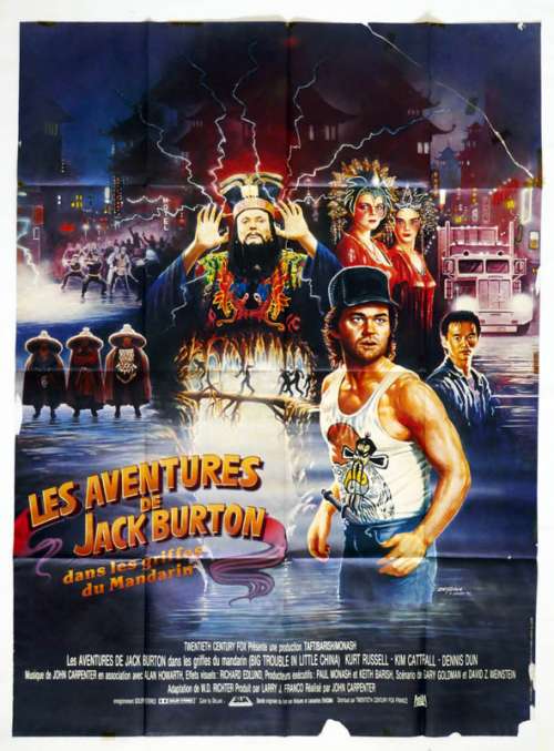 47" x 63" movie poster from BIG TROUBLE IN LITTLE CHINA (1986), directed by John Carpenter with Kurt Russell, Kim Cattrall, Dennis Dun, James Hong, Victor Wong (more on the Imdb)