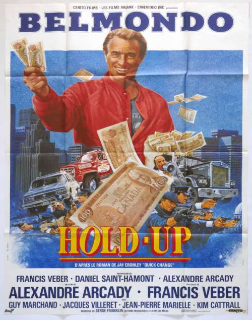 47" x 63" movie poster from HOLD-UP (1985), directed by Alexandre Arcady with Jean-Paul Belmondo, Kim Cattrall, Guy Marchand, Jean-Pierre Marielle, Jacques Villeret (more on the Imdb)