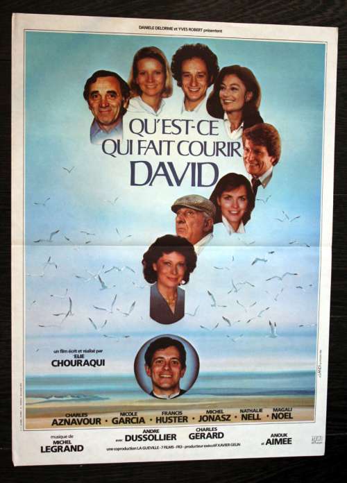 23" x 16" movie poster from WHAT MAKES DAVID RUN? (1982), directed by Élie Chouraqui with Charles Aznavour, Nicole Garcia, Francis Huster, Michel Jonasz, Nathalie Nell, Magali Noël (more on the Imdb)