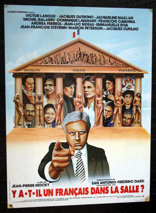 23" x 16" movie poster from IS THERE A FRENCHMAN IN THE HOUSE? (1982), directed by Jean-Pierre Mocky with Victor Lanoux, Jacques Dutronc, Jacqueline Maillan, Michel Galabru, Dominique Lavanant, Andréa Ferréol (more on the Imdb)