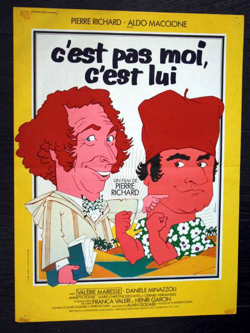23" x 16" movie poster from IT'S NOT ME, IT'S HIM (1980), directed by Pierre Richard with Pierre Richard, Aldo Maccione, Valérie Mairesse, Danielle Minazzoli (more on the Imdb)