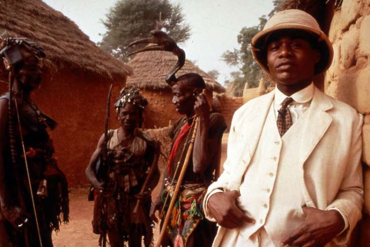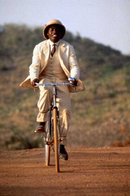 6 slides from MISTER JOHNSON (1990), directed by Bruce Beresford with Maynard Eziashi, Pierce Brosnan, Edward Woodward, Beatie Edney, Denis Quilley (more on the Imdb)