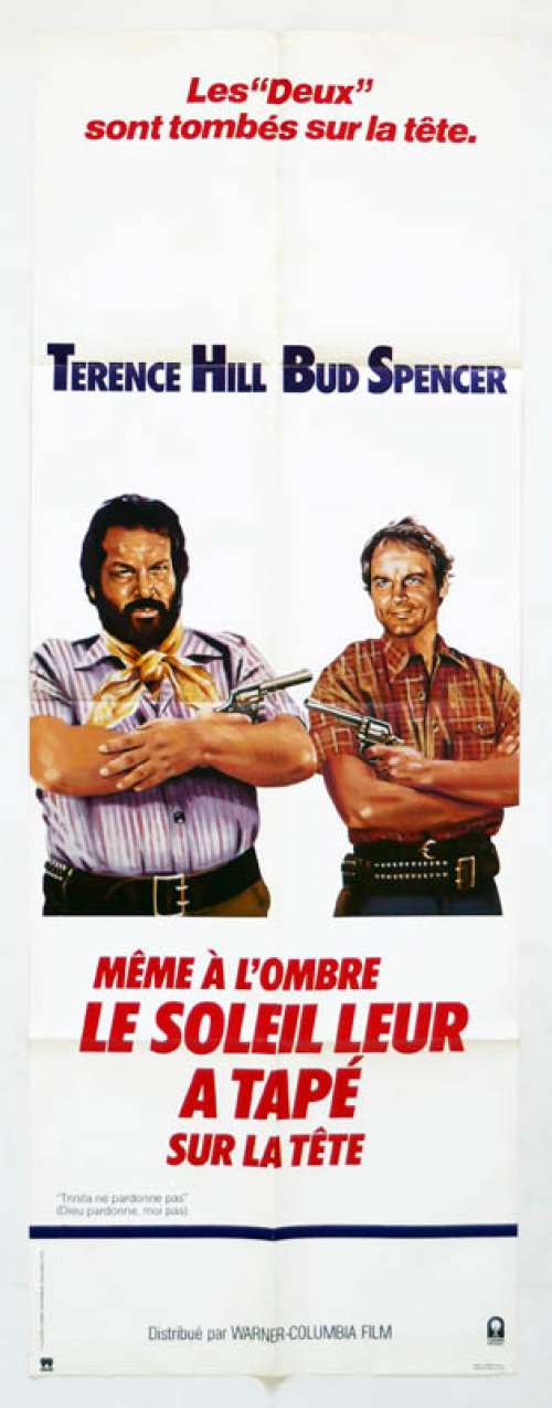 Affiche de cinéma 120 x 160 du film MÊME À L'OMBRE LE SOLEIL LEUR A TAPÉ SUR LA TÊTE (PANTALON) (1967), réalisé par Giuseppe Colizzi avec Terence Hill, Bud Spencer, Frank Wolff, Gina Rovere, José Manuel Martín, Luis Barboo (plus sur Imdb)
