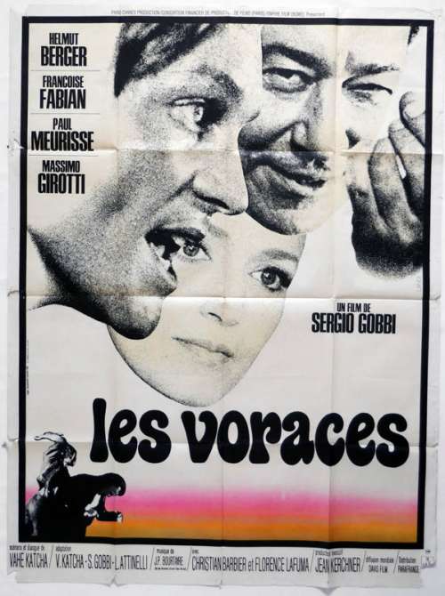 Affiche de cinéma 120 x 160 du film LES VORACES (1973), réalisé par Sergio Gobbi avec Helmut Berger, Françoise Fabian, Paul Meurisse, Massimo Girotti, Christian Barbier (plus sur Imdb)