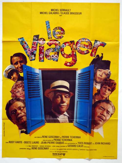 Affiche de cinéma 120 x 160 du film LE VIAGER (1972), réalisé par Pierre Tchernia avec Michel Serrault, Michel Galabru, Claude Brasseur, Rosy Varte, Odette Laure (plus sur Imdb)