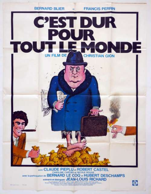 Affiche de cinéma 120 x 160 du film C'EST DUR POUR TOUT LE MONDE (1975), réalisé par Christian Gion avec Bernard Blier, Francis Perrin, Claude Piéplu, Robert Castel, Bernard Le Coq (plus sur Imdb)