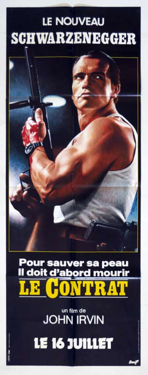 Affiche de cinéma 120 x 160 du film LE CONTRAT (PANTALON) (1986), réalisé par John Irvin avec Arnold Schwarzenegger, Kathryn Harrold, Sam Wanamaker, Paul Shenar, Robert Davi (plus sur Imdb)