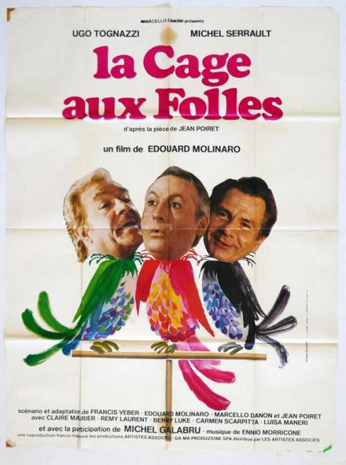 Affiche de cinéma 120 x 160 du film LA CAGE AUX FOLLES (1978), réalisé par Édouard Molinaro avec Ugo Tognazzi, Michel Serrault, Claire Maurier, Rémi Laurent, Carmen Scarpitta (plus sur Imdb)