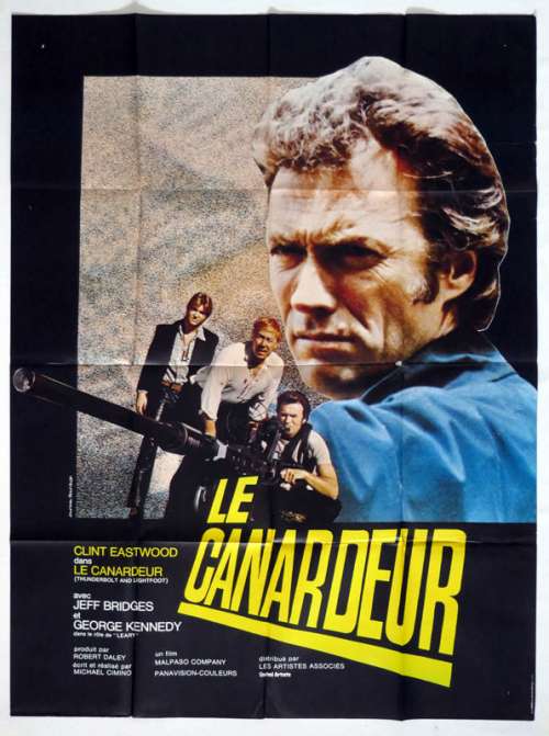Affiche de cinéma 120 x 160 du film LE CANARDEUR (1974), réalisé par Michael Cimino avec Clint Eastwood, Jeff Bridges, Geoffrey Lewis, Catherine Bach, Gary Busey (plus sur Imdb)