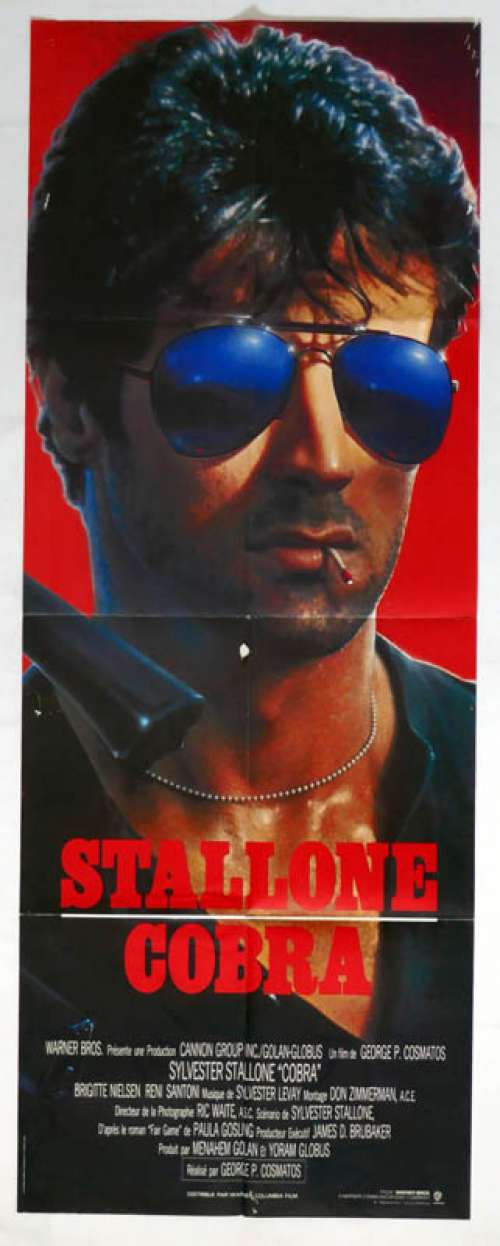 Affiche de cinéma 120 x 160 du film COBRA (PANTALON) (1986), réalisé par George P. Cosmatos avec Sylvester Stallone, Brigitte Nielsen, Reni Santoni, Andrew Robinson, Brian Thompson (plus sur Imdb)