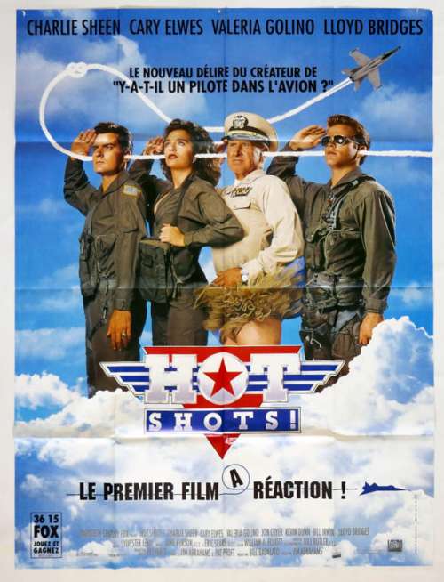 Affiche de cinéma 120 x 160 du film HOT SHOTS (1991), réalisé par Jim Abrahams avec Charlie Sheen, Cary Elwes, Valeria Golino, Lloyd Bridges, Kevin Dunn (plus sur Imdb)