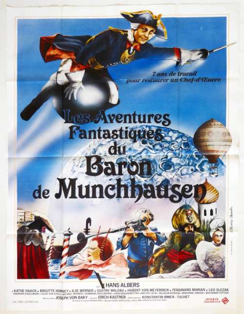 Affiche de cinéma 120 x 160 du film LES AVENTURES FANTASTIQUES DU BADRON DE MUCHHAUSEN (1943), réalisé par Josef von Báky avec Hans Albers, Kate Haack, Wilhelm Bendow, Michael Bohnen, Hans Brausewetter, Marina von Ditmar (plus sur Imdb)