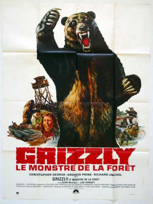 47" x 63" movie poster from GRIZZLY (1976), directed by William Girdler with Christopher George, Andrew Prine, Richard Jaeckel, Joan McCall, Joe Dorsey (more on the Imdb)