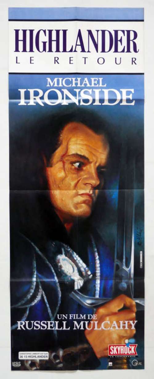 47" x 63" movie poster from HIGHLANDER II: THE QUICKENING (1991), directed by Russell Mulcahy with Christopher Lambert, Sean Connery, Virginia Madsen, Michael Ironside, Allan Rich (more on the Imdb)