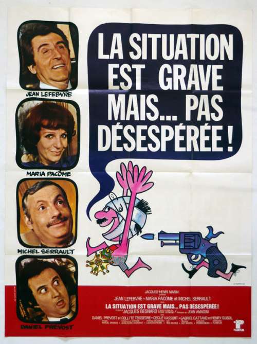 47" x 63" movie poster from LA SITUATION EST GRAVE... MAIS PAS DÉSESPÉRÉE (1976), directed by Jacques Besnard with Michel Serrault, Jean Lefebvre, Maria Pacôme, Daniel Prévost, Cécile Vassort (more on the Imdb)
