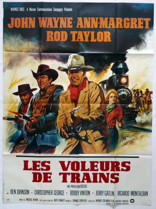 47" x 63" movie poster from THE TRAIN ROBBERS (1973), directed by Burt Kennedy with John Wayne, Ann-Margret, Rod Taylor, Ben Johnson, Christopher George (more on the Imdb)