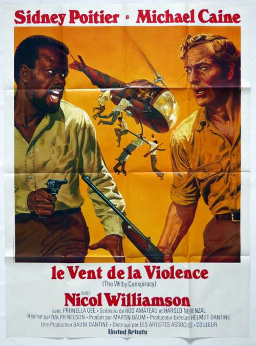 47" x 63" movie poster from THE WILBY CONSPIRACY (1975), directed by Ralph Nelson with Sidney Poitier, Michael Caine, Nicol Williamson, Prunella Gee, Saeed Jaffrey (more on the Imdb)