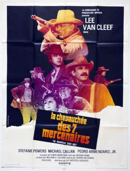 47" x 63" movie poster from THE MAGNIFICENT SEVEN RIDE! (1972), directed by George McCowan with Lee Van Cleef, Stefanie Powers, Michael Callan, Mariette Hartley, Luke Askew (more on the Imdb)