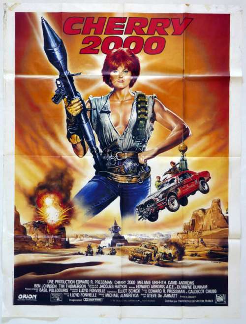 47" x 63" movie poster from CHERRY 2000 (1987), directed by Steve De Jarnatt with Melanie Griffith, David Andrews, Jennifer Balgobin, Marshall Bell, Harry Carey Jr., Laurence Fishburne (more on the Imdb)
