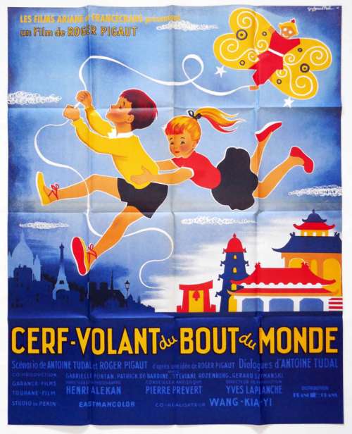 47" x 63" movie poster from CERF-VOLANT DU BOUT DU MONDE (1958), directed by Roger Pigaut with Patrick de Bardine, Sylviane Rozenberg, Jacques Faburel, Gérard Szymanski, Alain Astié (more on the Imdb)