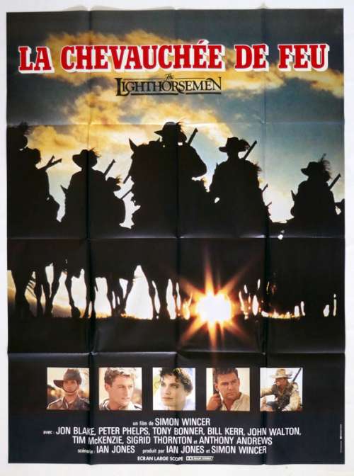 47" x 63" movie poster from THE LIGHTHORSEMEN (1987), directed by Simon Wincer with Peter Phelps, Nick Waters, John Larking, Jack Heywood, Di O'Connor (more on the Imdb)