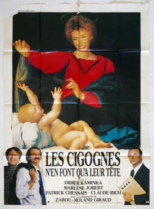 47" x 63" movie poster from LES CIGOGNES N'EN FONT QU'À LEUR TÊTE (1989), directed by Didier Kaminka with Marlène Jobert, Patrick Chesnais, Claude Rich, Ariane Lorent, Virginie Demians (more on the Imdb)