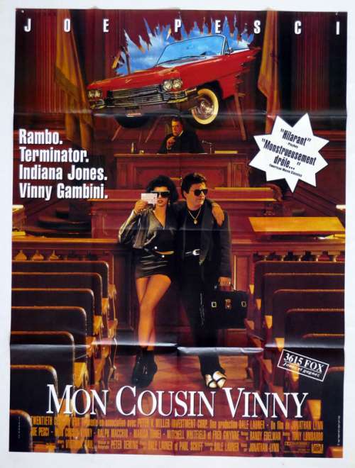 47" x 63" movie poster from MY COUSIN VINNY (1992), directed by Jonathan Lynn with Joe Pesci, Ralph Macchio, Marisa Tomei, Mitchell Whitfield, Fred Gwynne (more on the Imdb)