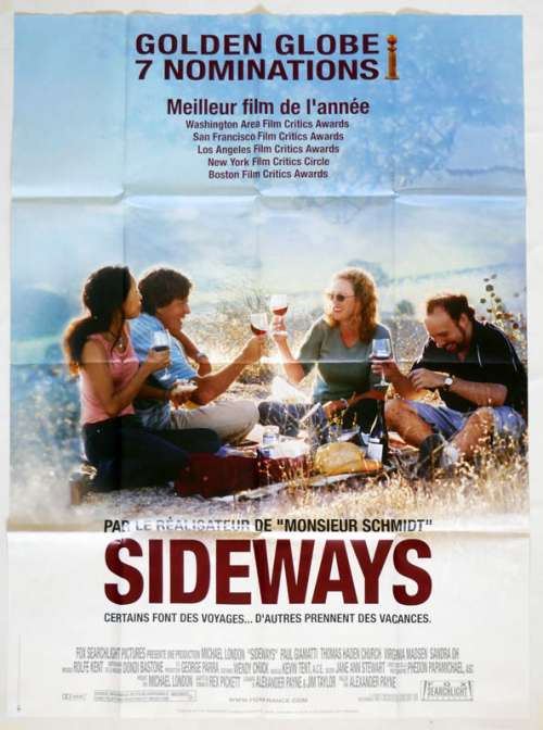 47" x 63" movie poster from SIDEWAYS (2004), directed by Alexander Payne with Paul Giamatti, Thomas Haden Church, Virginia Madsen, Sandra Oh, Marylouise Burke (more on the Imdb)