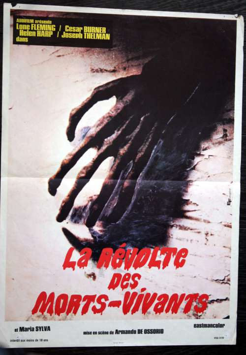 23" x 16" movie poster from MARK OF THE DEVIL 5: RETURN OF THE BLIND DEAD (1971), directed by Amando de Ossorio with Tony Kendall, Fernando Sancho, Esperanza Roy, Frank Braña, José Canalejas, Loreta Tovar (more on the Imdb)
