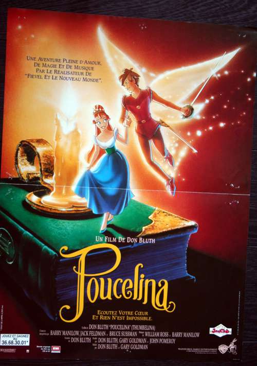 23" x 16" movie poster from THUMBELINA (1994), directed by Don Bluth, Gary Goldman with Gino Conforti, Barbara Cook, Jodi Benson, Will Ryan, June Foray, Kenneth Mars (more on the Imdb)