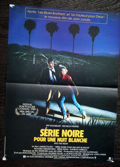 23" x 16" movie poster from INTO THE NIGHT (1985), directed by John Landis with Jeff Goldblum, Michelle Pfeiffer, Dan Aykroyd (more on the Imdb)