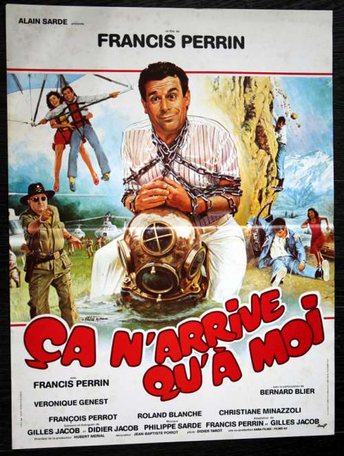 23" x 16" movie poster from ÇA N'ARRIVE QU'À MOI (1985), directed by Francis Perrin with Francis Perrin, Véronique Genest, François Perrot (more on the Imdb)