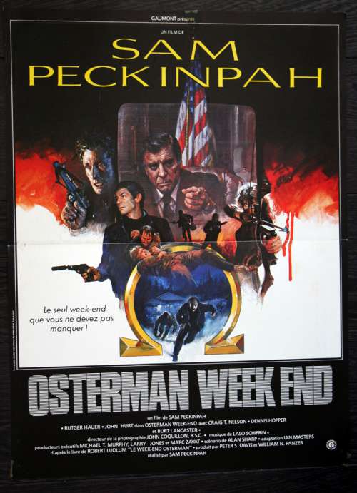 23" x 16" movie poster from THE OSTERMAN WEEKEND (1983), directed by Sam Peckinpah with Rutger Hauer, John Hurt, Craig T. Nelson, Dennis Hopper, Chris Sarandon (more on the Imdb)