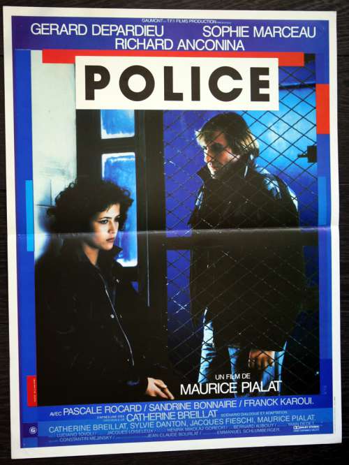 23" x 16" movie poster from POLICE (1985), directed by Maurice Pialat with Gérard Depardieu, Sophie Marceau, Richard Anconina, Pascale Rocard, Sandrine Bonnaire (more on the Imdb)
