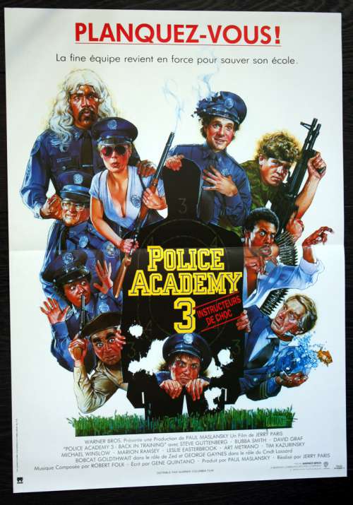 23" x 16" movie poster from POLICE ACADEMY 3: BACK IN TRAINING (1986), directed by Jerry Paris with Steve Guttenberg, Bubba Smith, David Graf (more on the Imdb)